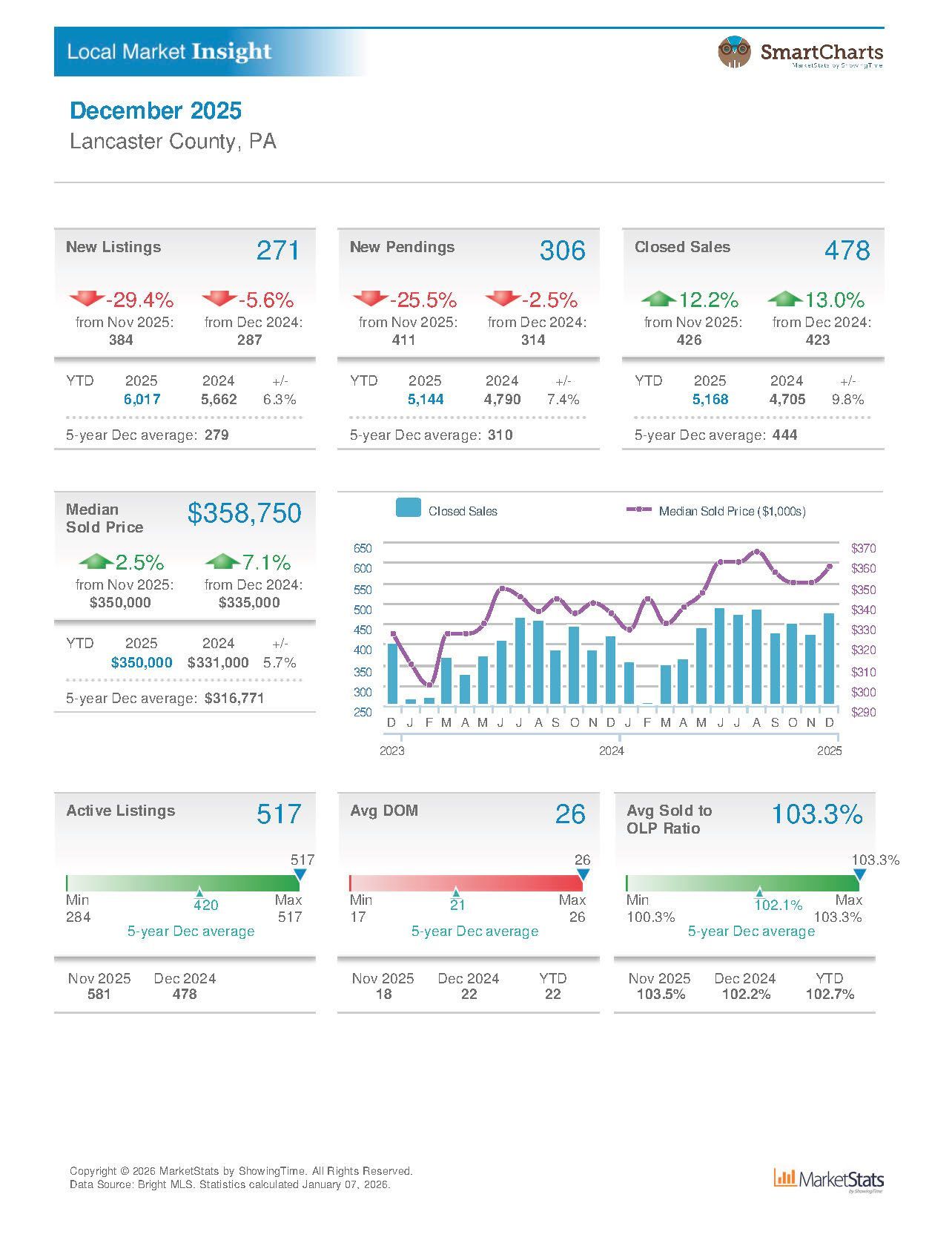 The Lancaster County Association of REALTORS® distributes monthly housing market statistics for Lancaster County, courtesy of Bright MLS.
